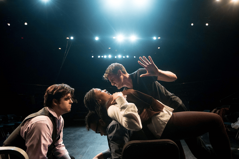 The iconic figures in one of Shakespeare’s most popular plays are brought vividly to life in a stripped-down staging by Aubie Merrylees, Aundria Brown, Kahlil Garcia, and Sam Massaro. They rocket from character to character at a lightning-bolt’s pace, directed by Artistic Director Eric Tucker.