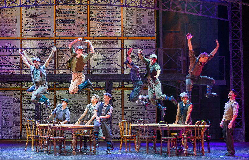 At La Mirada Theater, NEWSIES is presented with book by Harvey Fierstein, music by Alan Menken, lyrics by Jack Feldman, and directed and choreographed by Richard J. Hinds.