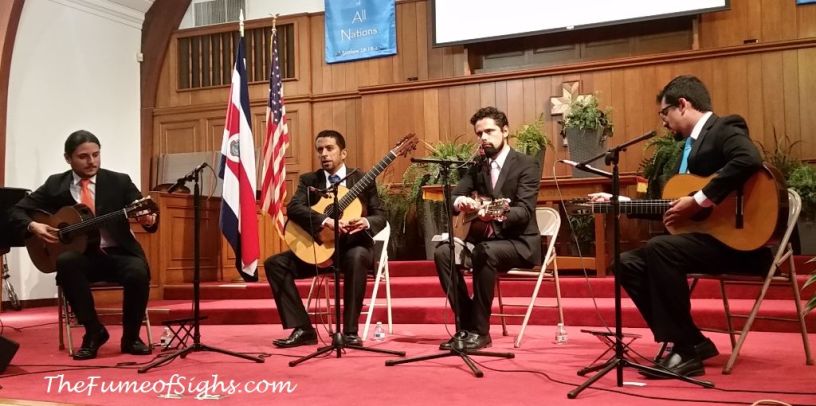 The quartet performed nine beautiful works, the majority by Costa Rican composers like Edmundo Nunez, Allen Torres, Ray Tico, and Edin Solis. The guitarists took turns introducing each piece, speaking Spanish, which they said to enjoy since they had been speaking English throughout the tour.