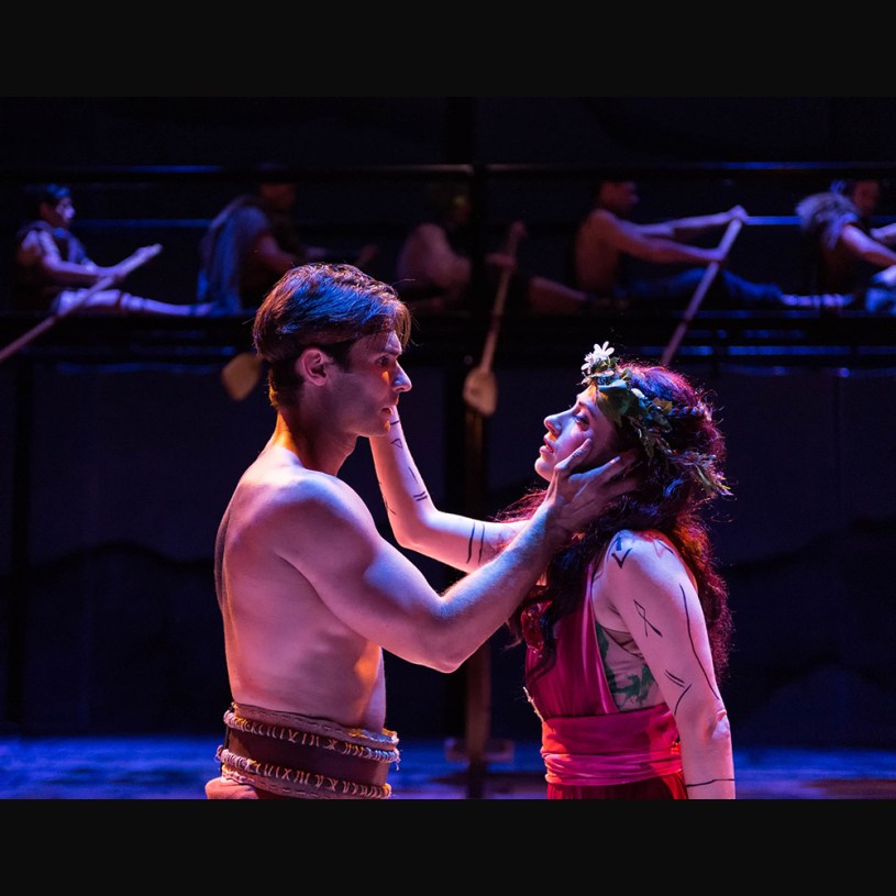 This production of ARGONAUTIKA is a sensory feast that includes actors swinging from ropes and working from the aisles, fabric that is made to look like the ocean, a singer twirling from aerial silks, battles, songs, and much more.