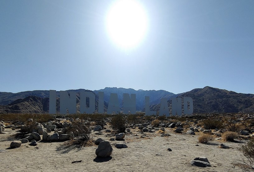 One of the most popular installations is NEVER FORGET (pictured above), by Alaskan artist Nicholas Galanin, who placed supersized letters, reminiscent of the famous Hollywood sign, that read “Indian Land,” claiming the desert for its true owners. Viewers enjoy taking pictures of this sign, which has as backdrop the dry brown hills that welcome visitors to Palm Springs.