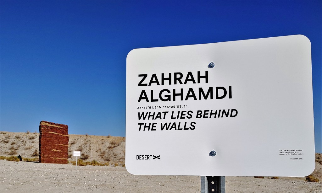 Saudi Arabia’s Zahrah Alghamdi built a tall wall in Desert Hot Springs with products both from her country and from our California desert. This is a windy location that’ll require some walking and that will give you gorgeous views of the desert.