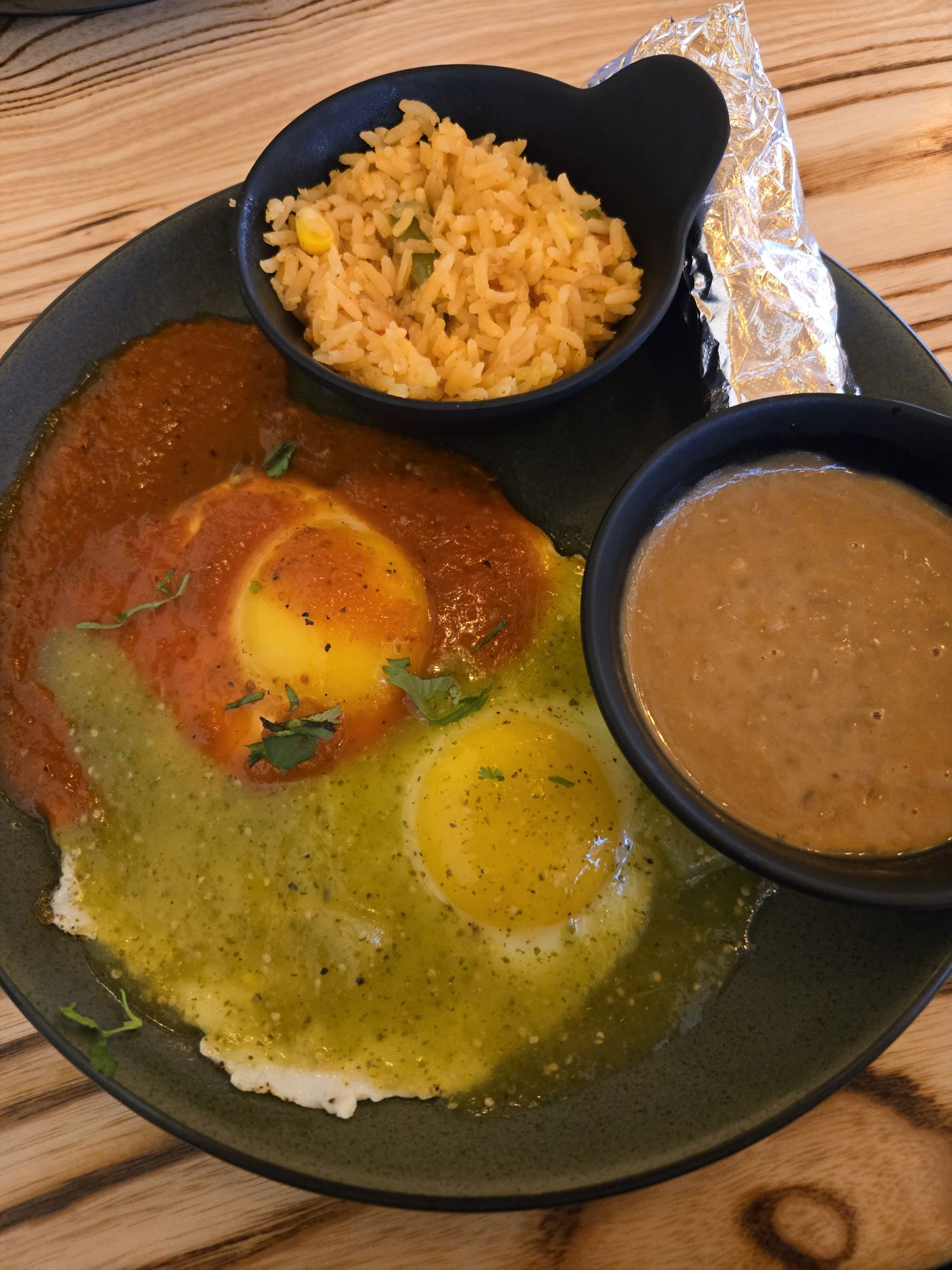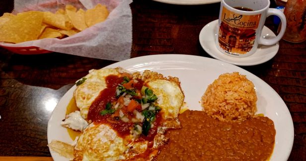Open early in the morning for breakfast (8 am or 9 am, depending on the day), La Delicia serves authentic Mexican breakfast dishes like huevos rancheros, huevos divorciados (pictured), and café de la olla. The salsa music in the background will lift your spirits – and if you’re in the mood, the cantina bar offers an assortment of cocktails to elevate them even more!