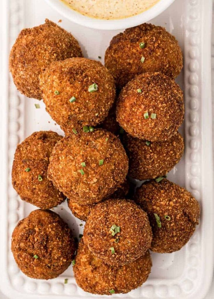 Boudin balls are a delicious Southern treat that take the flavors of traditional boudin sausage—pork, rice, and Cajun seasonings—and turn them into bite-sized, deep-fried perfection. Unlike boudin sausage, which is served in a casing, boudin balls are rolled, breaded, and fried until golden brown. They’re crispy on the outside, soft and flavorful on the inside, and often served with a side of remoulade or spicy mustard for dipping. They’re irresistible bar food!