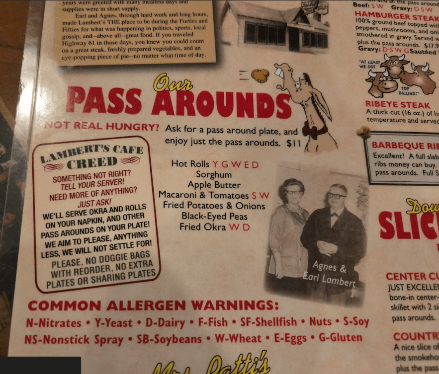 From Mobile, it’s about an hour and 15-minutes to reach this place, but it’s different enough to be worth your time. This is the place where they literally throw bread rolls at you. Go hungry and say yes to every pass-around (fried okra, macaroni and tomatoes, fried potatoes, etc.). You can choose to purchase only the pass-arounds, or you can enjoy them for free when you order an entree. The don’t serve alcohol, but the soft drinks and teas are huge! And you can buy a cup to take home for $8.50. One thing is for sure – you won’t leave this place hungry. Do try to catch a bun!
