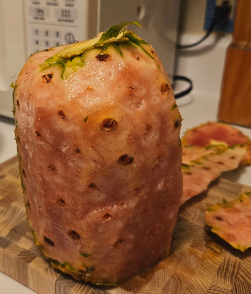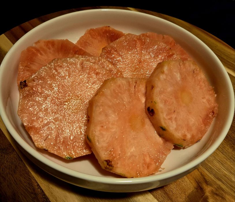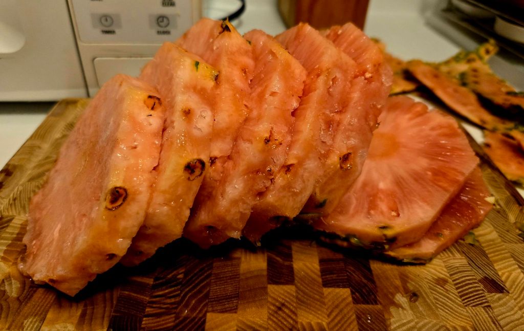 Last year, my brother mailed me one of these stunning pink pineapples. The flesh was a beautiful blush color, almost too pretty to cut into. The flavor? Sweet, delicate, and refreshing, with less acidity than a regular pineapple. I’m sharing here a few of the photos I took back then.